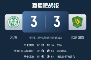 体育资讯10月25日讯 在周中进行的亚冠二级联赛小组赛比赛中,北京国安客场3-3与中国香港球队大埔战平。