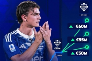 尼科-帕斯23年2月在皇马时身价仅为200万欧,本赛季尼科-帕斯为科莫出战6次,数据为3球3助,现身价3500万欧。
