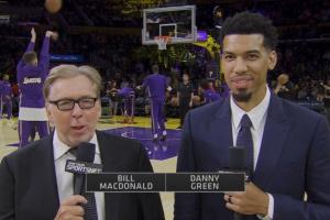 今日前NBA球员、现湖人电台Spectrum SportsNet解说员丹尼-格林现场解说湖人VS勇士的季前赛。